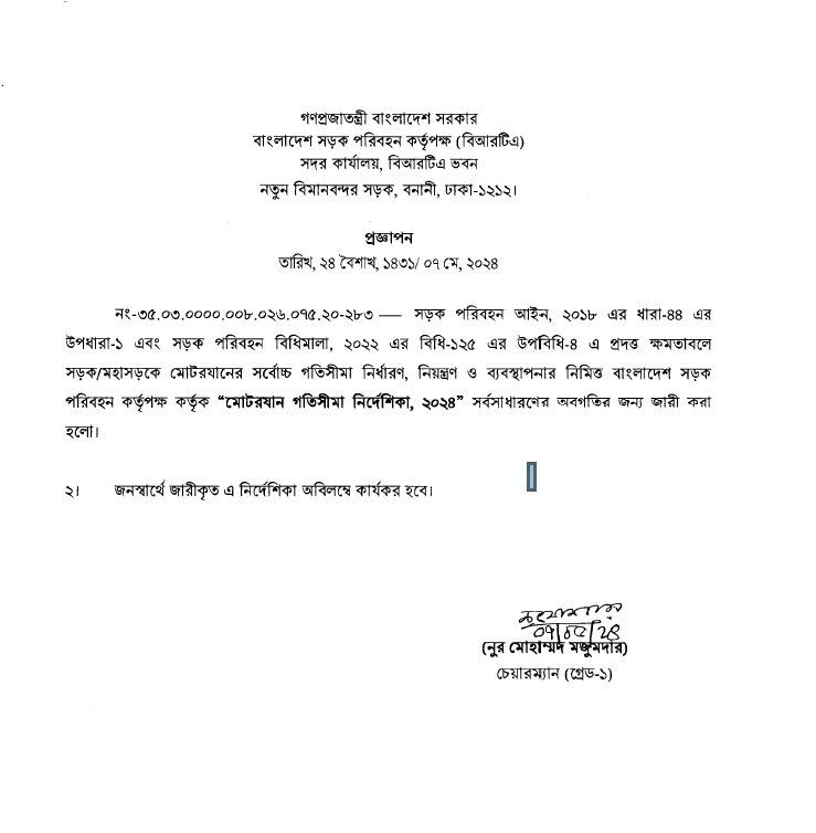 মোটরযার গতিসীমা নির্দেশিকা ২০২৪