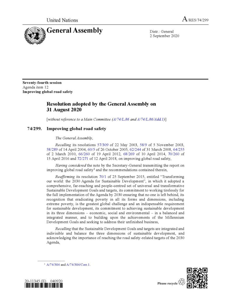 United Nations, General Assembly Resolution 74299